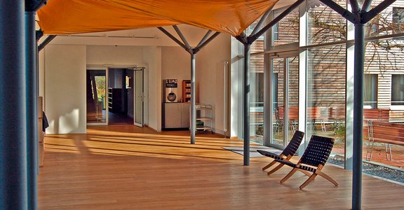 Ein großer naturnaher Garten, Bildungs- und Freizeiträume sowie eine Sport- und Mehrzweckhalle schaffen vielfältige Möglichkeiten für Begegnung, Bildung, Sport und Freizeit.